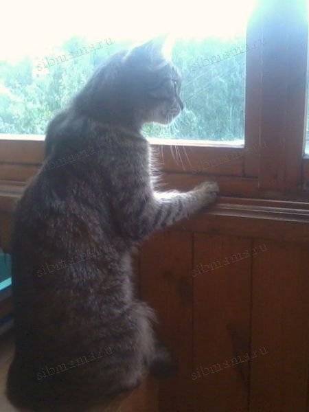 Рис.12. Голова повёрнута, усы распушены, хвост не распрямлён, шея расслаблена. Кот просто смотрит на улицу.