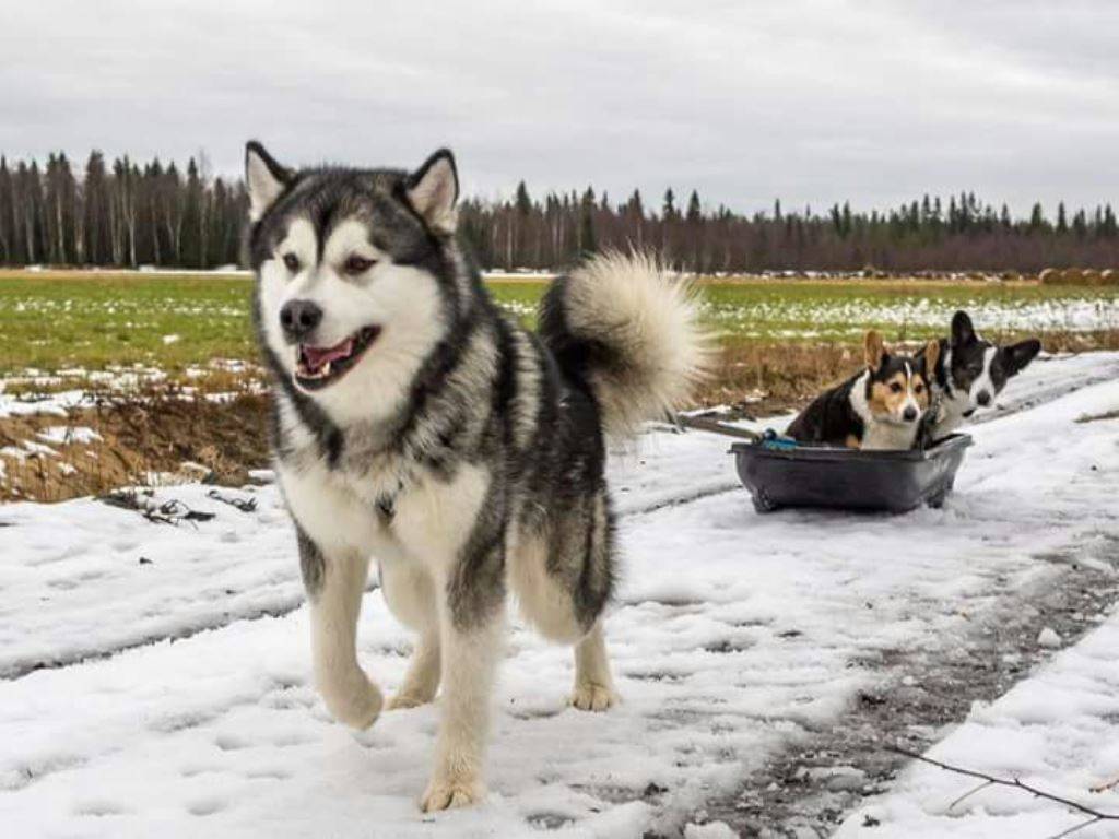 Выносливость и сила аляскинских маламутов позволяла им перевозить тяжелые повозки на большие расстояния
