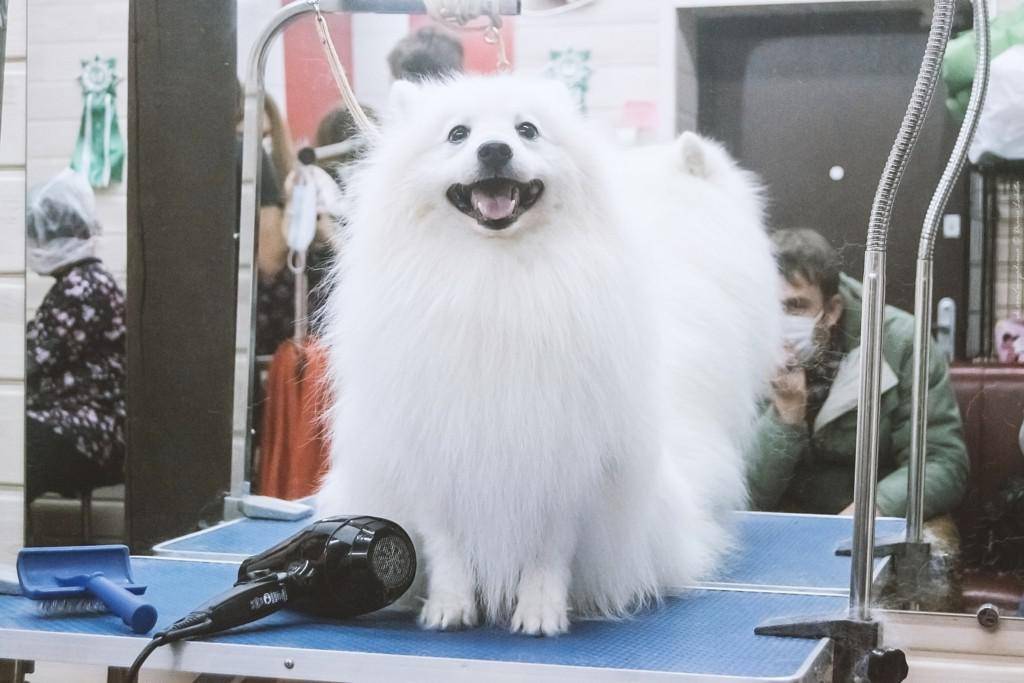 Белоснежная шерсть этих псов на удивление не требует особого ухода. Она обладает способностью отталкивать грязь, которая попадает на нее во время выгуливания. Шпицы чистоплотны и не имеют запаха, характерного для обычных собак. Их густая шерстка нуждается в регулярном вычесывании, так как они линяют в течение всего года. Благодаря регулярной чистке (3-4 раза в неделю) вы сможете избежать распространение белых комков по жилищу и предотвратить образование колтунов, которые негативно влияют на самочувствие.