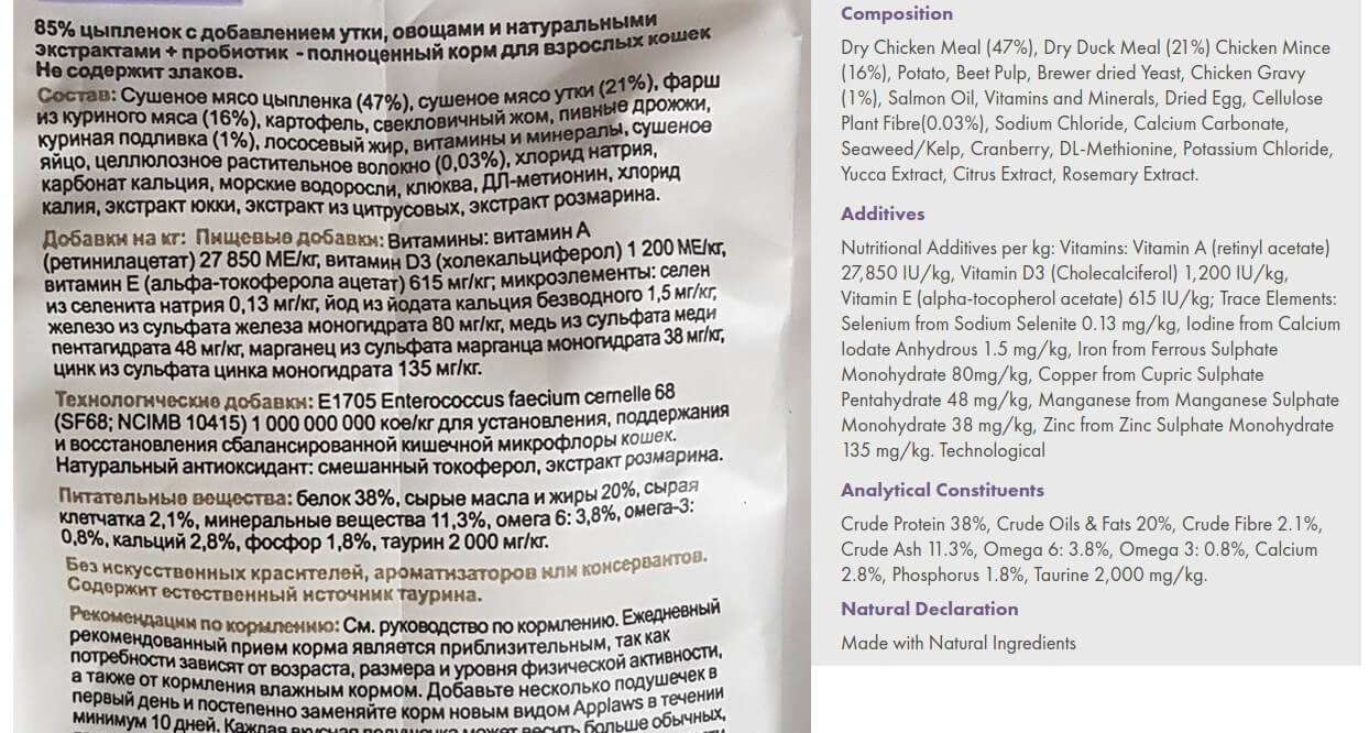 Состав корма Апплаус
