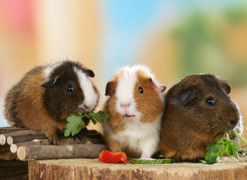 - Рахит. Вызывается авитаминозом, некачественным рационом, нехваткой солнца. У больной свинки извращается вкус: она грызет подстилку, прутья клетки, игрушки. В запущенном случае у животного искривляются лапки и позвоночник, утолщаются суставы, отмечаются судороги. Шерсть тускнеет, сбивается в комки, появляется перхоть. Чем кормить питомца, чтобы избавить его от рахита? Нужно давать больше сена и свежей зелени, добавлять в корм витамины, минералы, особенно кальций. Если свинка пьет много воды, то ей не хватает сочной пищи.