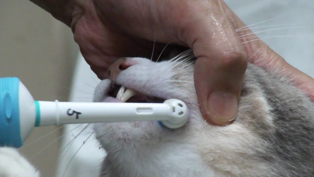 Рекомендуется раз в неделю чистить кошке зубы специальными щетками и пастами.