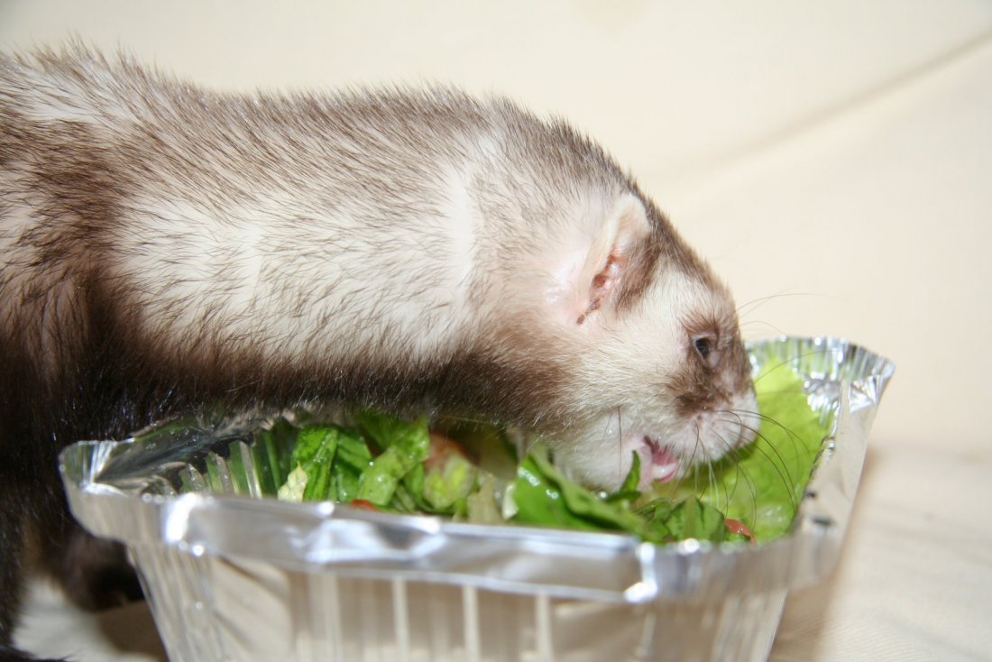 Зелень и овощи в рационе хорька не больше 10%