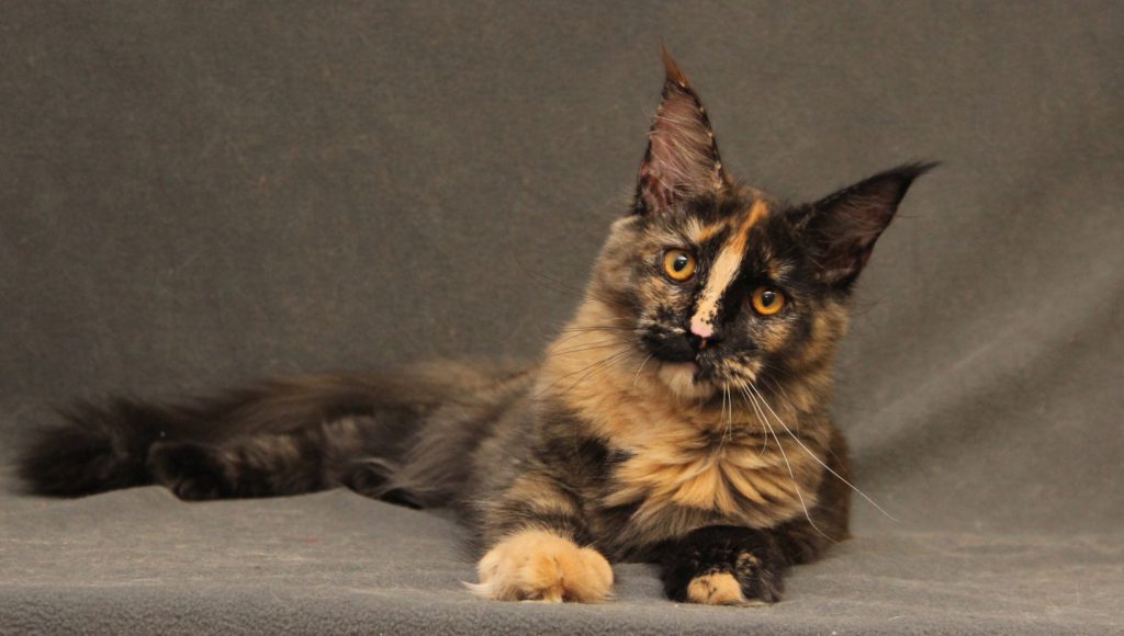 - Мейн-кун – крупнейшая порода домашних кошек. По стандарту могут иметь любой окрас, в том числе и черепаховый.