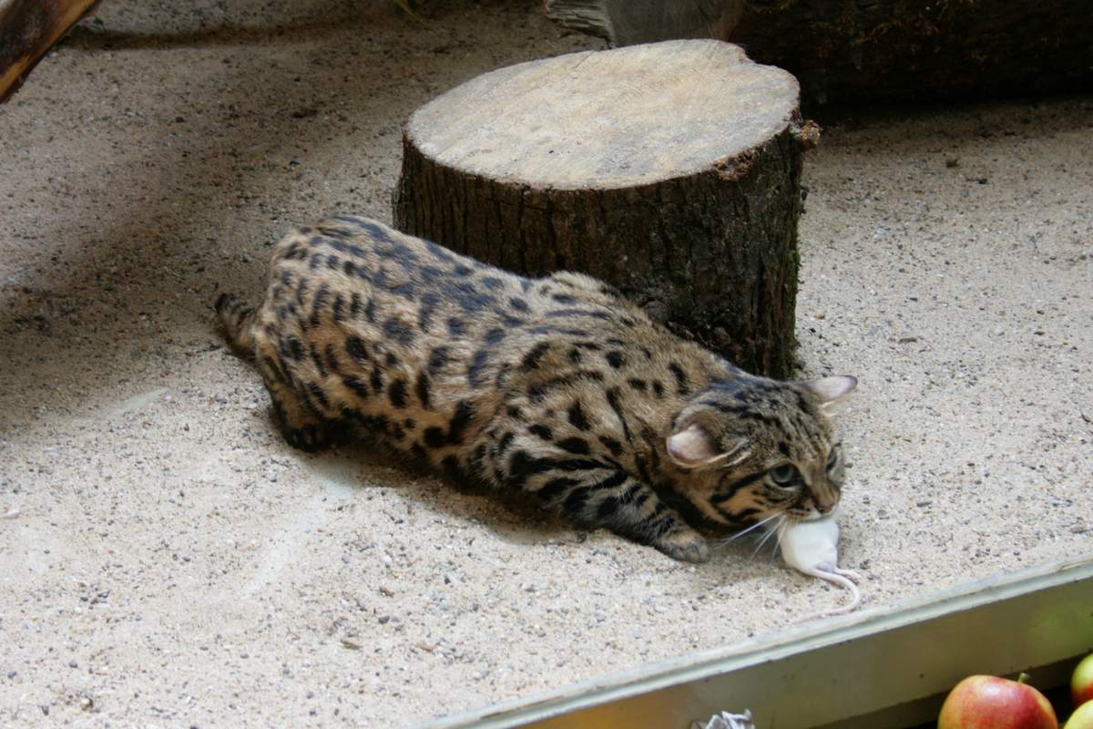 Интересным является способ приучения детенышей к охоте. Самка приносит в нору добычу, которую словила во время ночной охоты, живую. Перед котятами стоит задача – умертвить ее. Через 3-4 месяца котята полностью сформированы, умеют сами охотиться, а потому покидают нору для ведения самостоятельной, уединенной жизни.