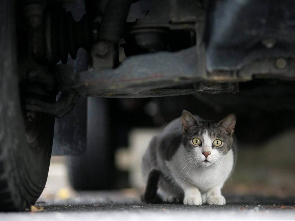 - Под машинами. Испуганные животные, оказавшись на улице, ищут укромные места.