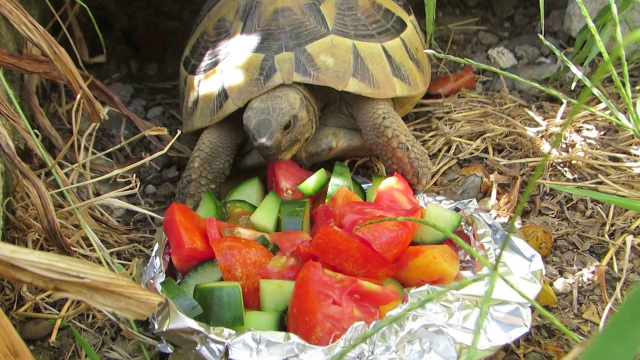В рационе должен присутствовать болгарский перец, огурцы, томаты, кабачок, баклажаны. Не обойтись без тыквы, редиса, бобовых, моркови и свёклы. В качестве дополнительного корма дают брокколи, сельдерей, сухую морскую капусту.