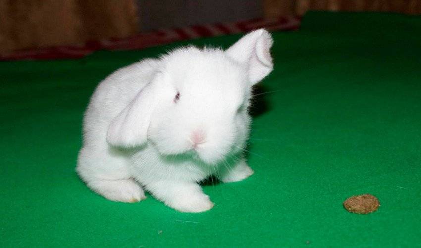 Кролики небольшого размера, чисто белого цвета. Глаза – серые или красные. Питомцы этой породы очень ласковые и любят играть. Живут долго — 8-12 лет.