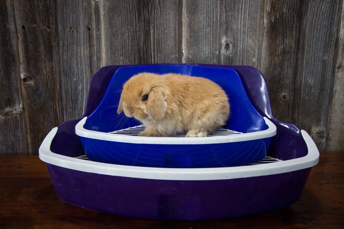 - Лоток можно поставить в один из углов, так как декоративные вислоухи обычно привыкают испражняться в определённом месте. С этой целью можно приобрести специальный угловой лоток, который крепится к прутьям клетки либо использовать обычный кошачий.