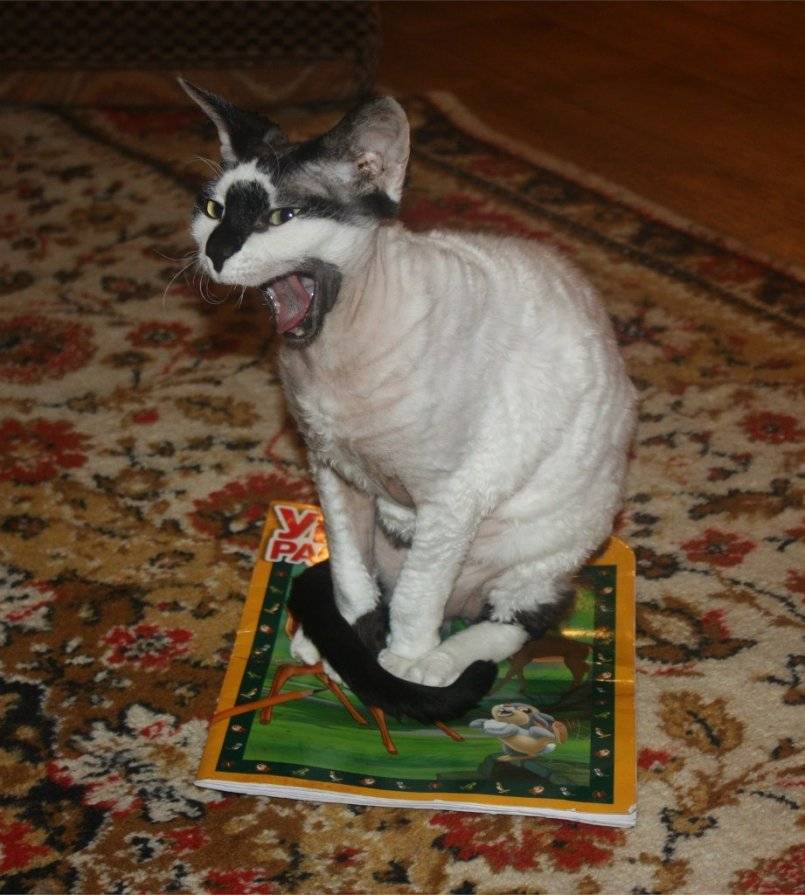 Только не нужно их перекармливать – у девон-рексов отсутствует центр насыщения. Они съедят не только то, что лежит в миске, но и не погнушаются стащить еду с хозяйского стола