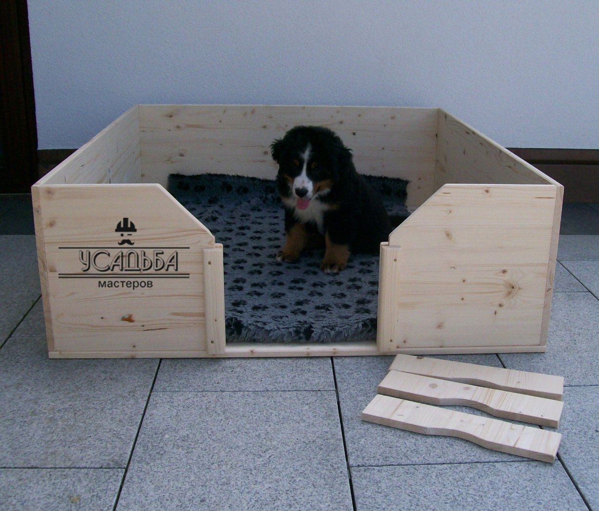 Стены у конструкции рекомендуется делать сплошными, чтобы собака не поранилась, например, высовывая лапу в щель. Стены без щелей также защитят питомца от сквозняков и сделают дом более уютным. Обычно высота стенок достигает 70 см, чтобы было легко перешагнуть через манеж, и чтобы щенок не смог из него выбраться.