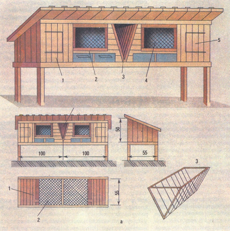 - Каркас и опора клеток выполняются из дерева, перегородки внутри — из фанеры.