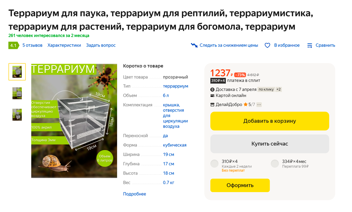 Дом для Эдварда мы подготовили заранее. Обошли зоомагазины рядом с домом и нашли подходящий террариум в салоне аквариумов — он стоил 2000 Р. Но покупка оказалась напрасной: в итоге почти весь год Эдвард прожил в пластиковом контейнере, в который до этого была упакована туалетная вода.