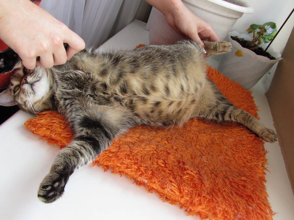 - Живот больного кота раздувается, бурчит. «Пациент» не даёт даже слегка прикоснуться к себе, жалобно мяукает, сутулится, опускает уши, шипит на людей — это говорит о том, что зверь испытывает боль.