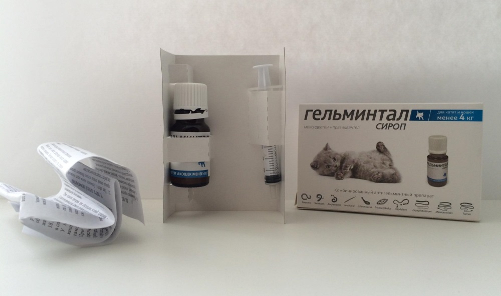 Препарат Гельминтал для кошек производится в виде капель для наружного применения, а также в виде сиропа. Второй вариант используется только в профилактических и терапевтических целях во время заражения гельминтами, хотя у него те же действующие вещества, что и у капель.