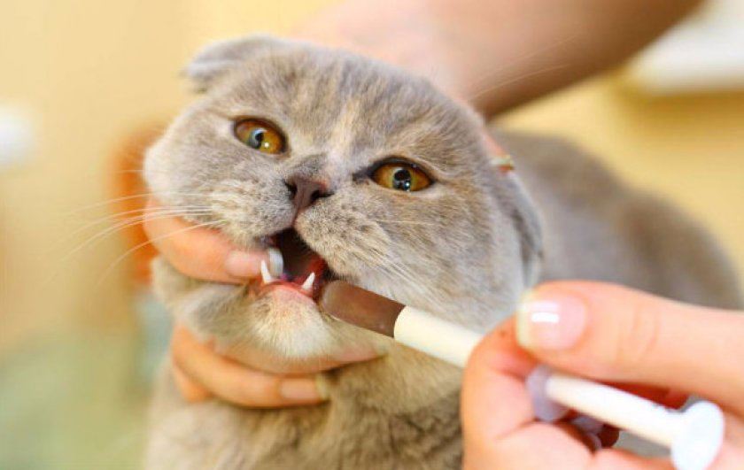 Осуществить прием препарата питомцем довольно трудно, поскольку содержимое имеет специфический и насыщенный запах. Добавлять суспензию в пищу или еду не удастся, поэтому придется прибегать к принудительному приему препарата, выдавливая содержимое шприца на корень языка. Необходимо надежно зафиксировать положение питомца, постараться успокоить его, открыть пасть и выдавить содержимое лекарства.