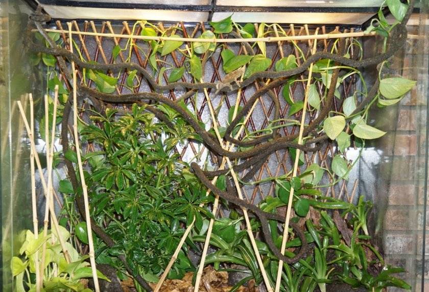 Лучше будет приобрести сразу более просторный террариум. Это позволит животному в любом месте и на любом ярусе подыскать себе уголок.