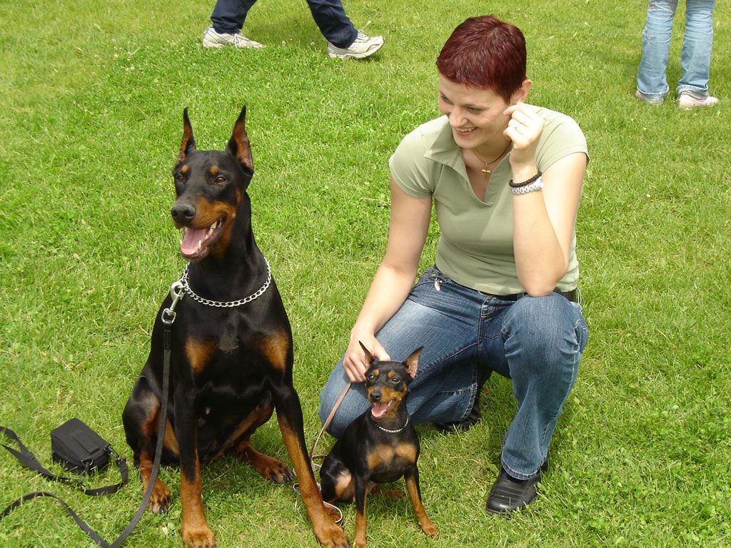 В породе имеются две ростовые категории: стандартная (45–50 см) и карликовая (25–30 см). Доберман выделяется отдельно.