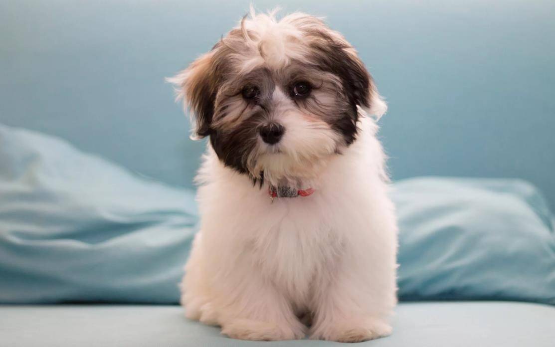 Отличительная черта Хаванез – их окрас. Стандартный цвет шерсти у Болонки – белый, но из-за крови кубинских «аборигенов» Гаванцы получили черные и коричневые пятна на мордочку, лапы и тело. Вырастают песики до 25 см, у них прямоугольное тело с ярко выраженной холкой, покатым крупом и широкой поясницей. Морда недлинная, округлый череп и свисающие уши. Хвост закинут на спину.