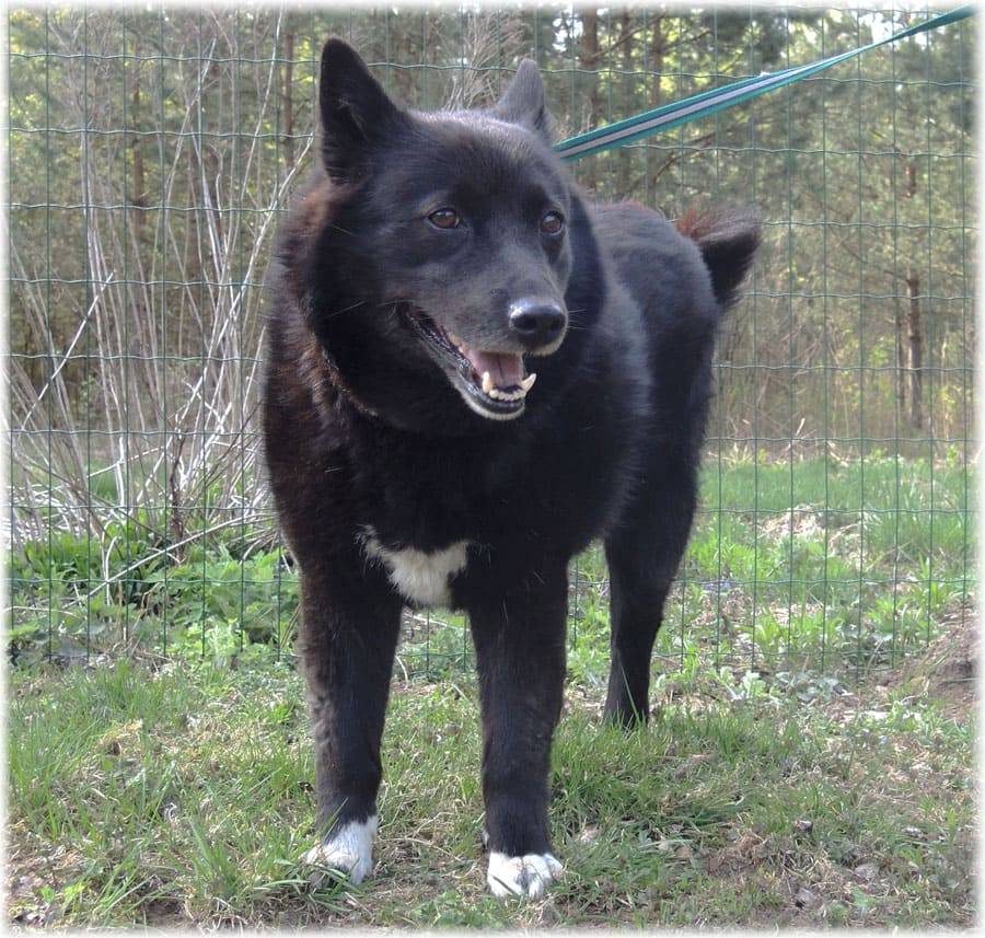 Фото русско-европейская лайка черного окраса с белыми носочками