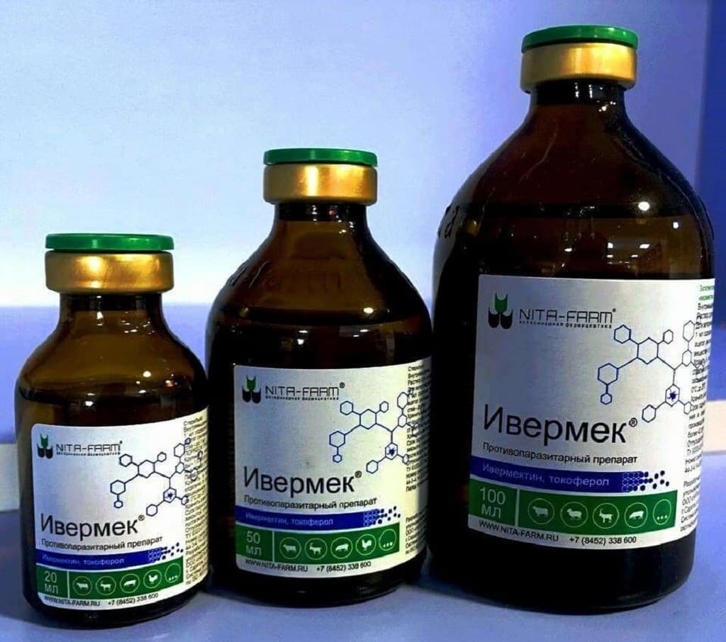 Ивермек выпускается расфасованным по 1, 10, 20, 50, 100, 200, 250, 400 и 500 мл в стеклянные флаконы, укупоренные резиновыми пробками, укрепленными алюминиевыми колпачками или по 400, 500 и 1000 мл полимерные бутылки, укупоренные завинчивающимися пластиковыми крышками.