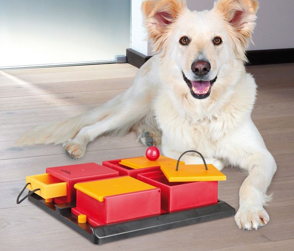 Игрушки-головоломки для собак должны быть интересными, но не слишком сложными. Разгадывая головоломку, собака будет искать лакомство в лабиринте.