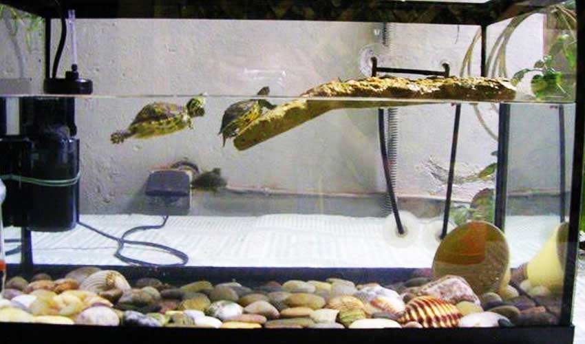Чтобы обеспечить свою любимую черепашку всеми необходимыми условиями нужно приложить некоторое количество усилий. Размер акватеррариума должен быть внушительным. Водная среда должна составлять 75% от всей площади жилища черепахи.