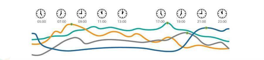 За 24 часа меняются многие состояния и параметры: сон и бодрствование, температура человеческого тела, частота сердечных сокращений, артериальное давление, секреция гормонов (мелатонин, серотонин, кортизол), выработка желудочного сока, разрастание клеток и многие другие функции.