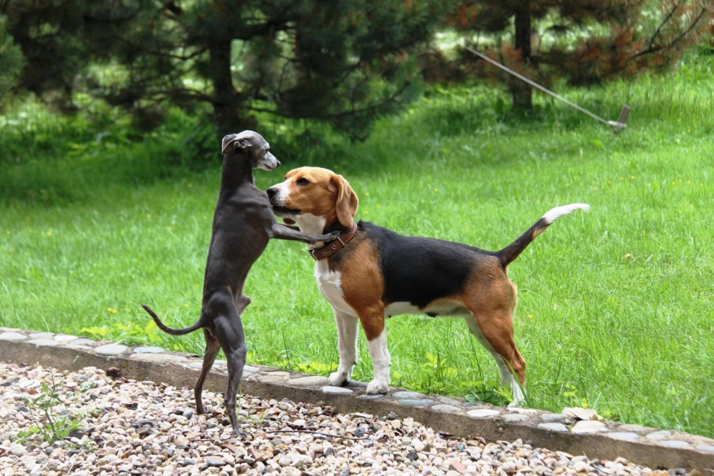 Все внимание достается кобелям. Гормональный всплеск делает всех равными, поэтому очень часто крупную представительницу очаровывает маленький песик, а мелкопородную собачку – гигантский кобель.
