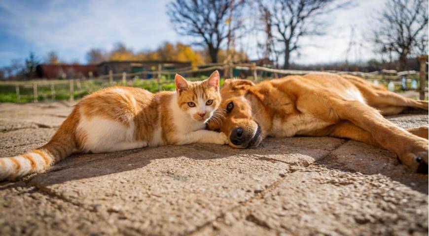 Когда кот и собака расслаблены в присутствии друг друга, можно считать, что знакомство прошло успешно. После этого попробуйте снять с собаки поводок и выпускать питомцев на совместные прогулки.