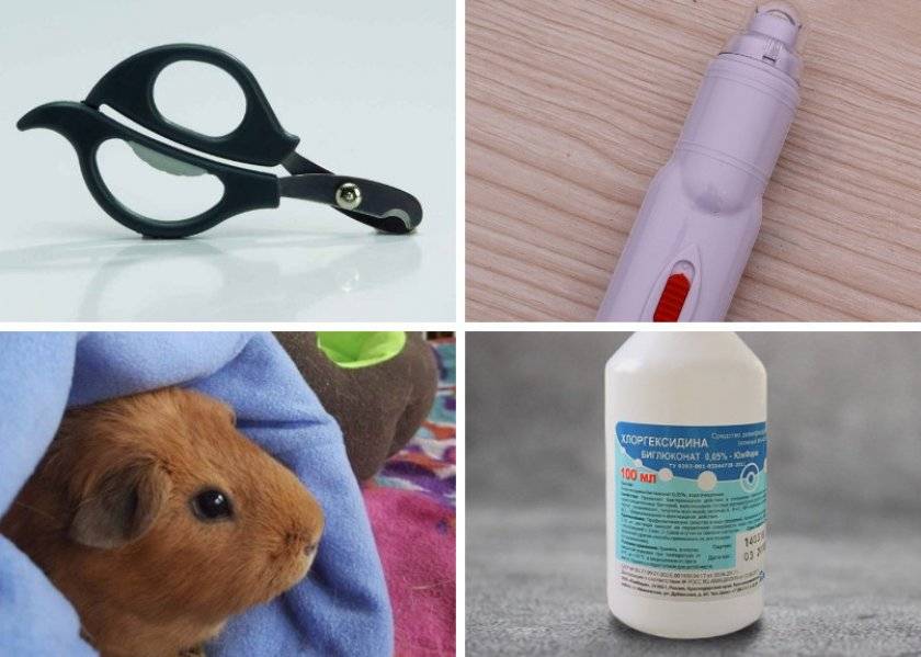 Кусачки для грызунов можно заменить детскими либо кошачьими. Электрическая точилка или когтеточка поможет обточить коготок, не зацепив кровеносный сосуд либо нерв. Кровоостанавливающий порошковый препарат, который иногда прилагается к бритвенным принадлежностям. Он понадобится, чтобы остановить кровь, если будет задет кровеносный канал. Вместо порошка можно приготовить крахмал, мирамистин, перекись водорода. Мягкое чистое полотенце необходимо для того, чтобы удерживать зверька во время маникюра-педикюра.