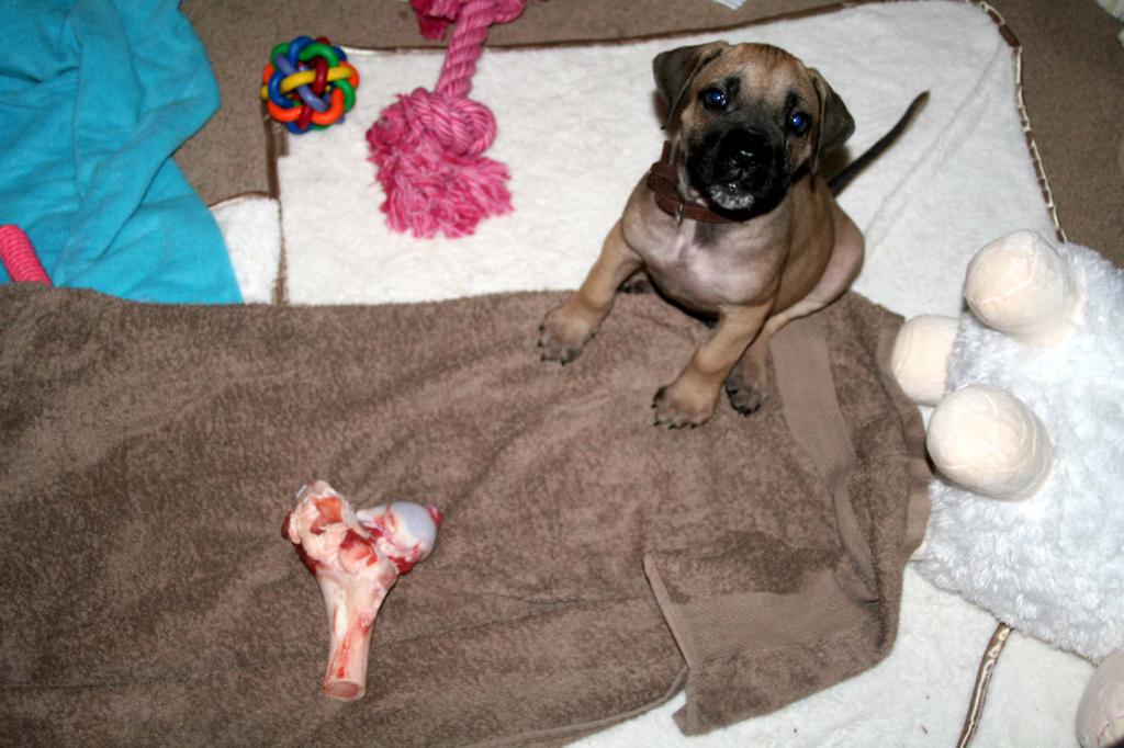 В сыром виде скармливают хрящевые косточки, хвосты. Для укрепления и очистки зубов с 3 месяцев дают обгладывать говяжьи голени после обрезки.
