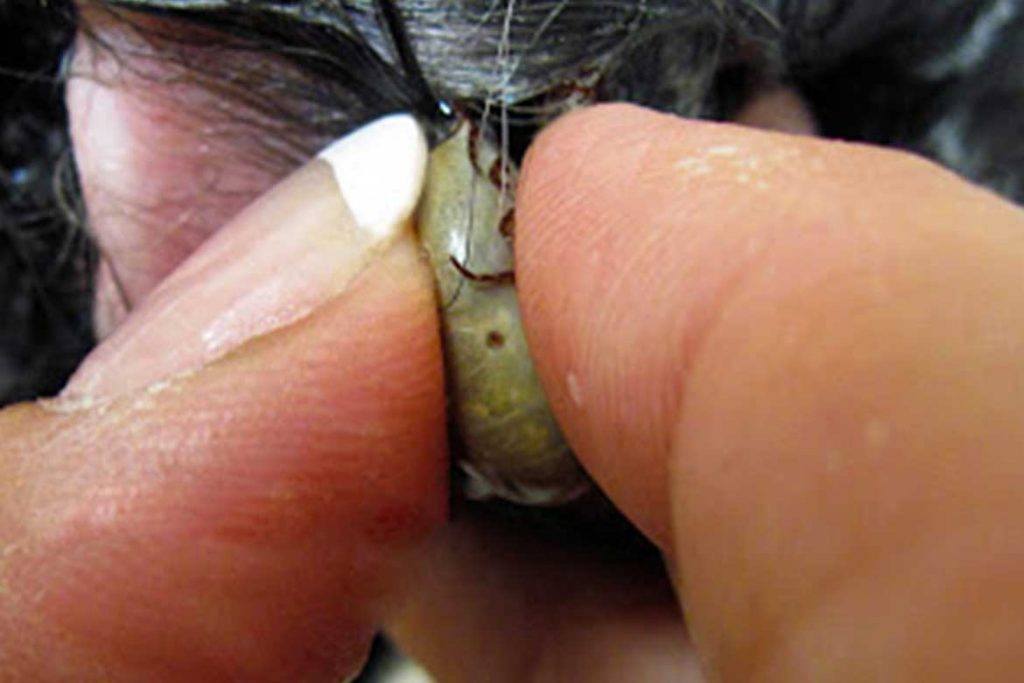 - Запрещается резко вынимать паразита, поскольку под кожей он распрямляет крючки, в результате чего его голова останется в коже животного. Доставать оставшиеся в коже части тела насекомого намного труднее.