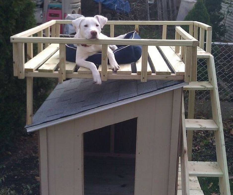 Особо оригинальные хозяева создают для своих собак настоящие двухэтажные «квартиры» с лестницей и зоной для отдыха на солнце