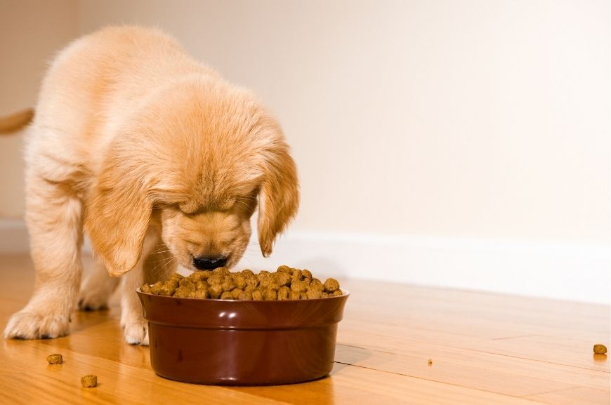 Начальный период взросления соотносится с переходом малыша от материнского молока к твёрдой пище. В это время щенки нуждаются в частых кормлениях небольшими порциями, до шести раз в день. Начиная примерно с четырёх месяцев, собаки могут начать есть около трёх раз в день. Трёх-или четырёхразовое кормление в этот период помогает поддерживать необходимый стабильный уровень энергии и облегчает переваривание пищи. Переход на двухразовое «взрослое» кормление происходит в разные временные интервалы: мелкие породы — в 7-9 месяцев, крупные — от года до полугода.
