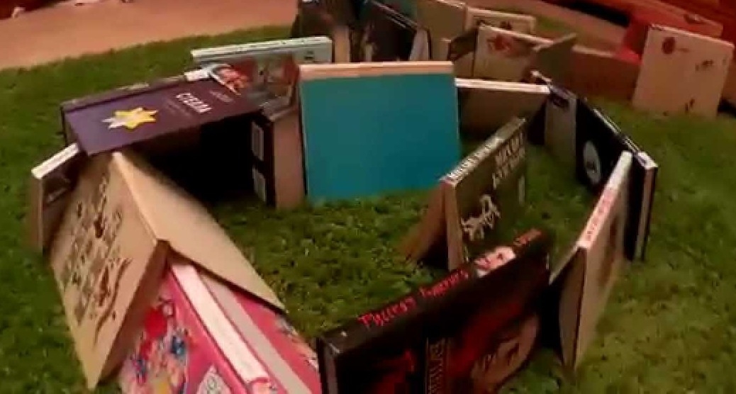 В таких книжных крепостях дети любят устраивать хомячьи бега. Участников забега выпускают из клетки и наблюдают, кто первый доберётся к финишу. На выходе победителя должна ждать награда в виде лакомства.