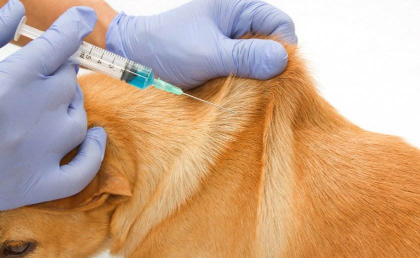- при продолжительном курсе инъекций каждый последующий укол больной собаке делать в другую зону;