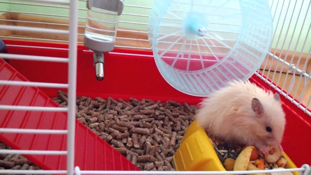 Грызун делает запасы на дне клетки, их нельзя выбрасывать во время уборки, потому что, если он после уборки их не обнаружит, получит стресс.