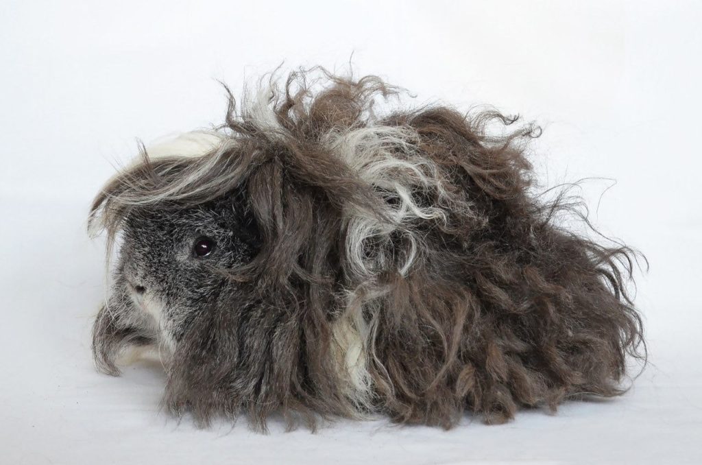 У этих свинок шерсть растет по-особенному. Мордочка у них открытая, а вдоль тела, сверху вниз, спадают кудри. Волосы есть даже на ушках, поэтому за их состоянием придется следить, чтобы сера не забивала. Эта порода примечательна тем, что размер их тела порой достигает меньшей длины, чем размер тела других свинок. Из-за этого они похожи на пушистые комочки, от которых и дети, и взрослые приходят в восторг.