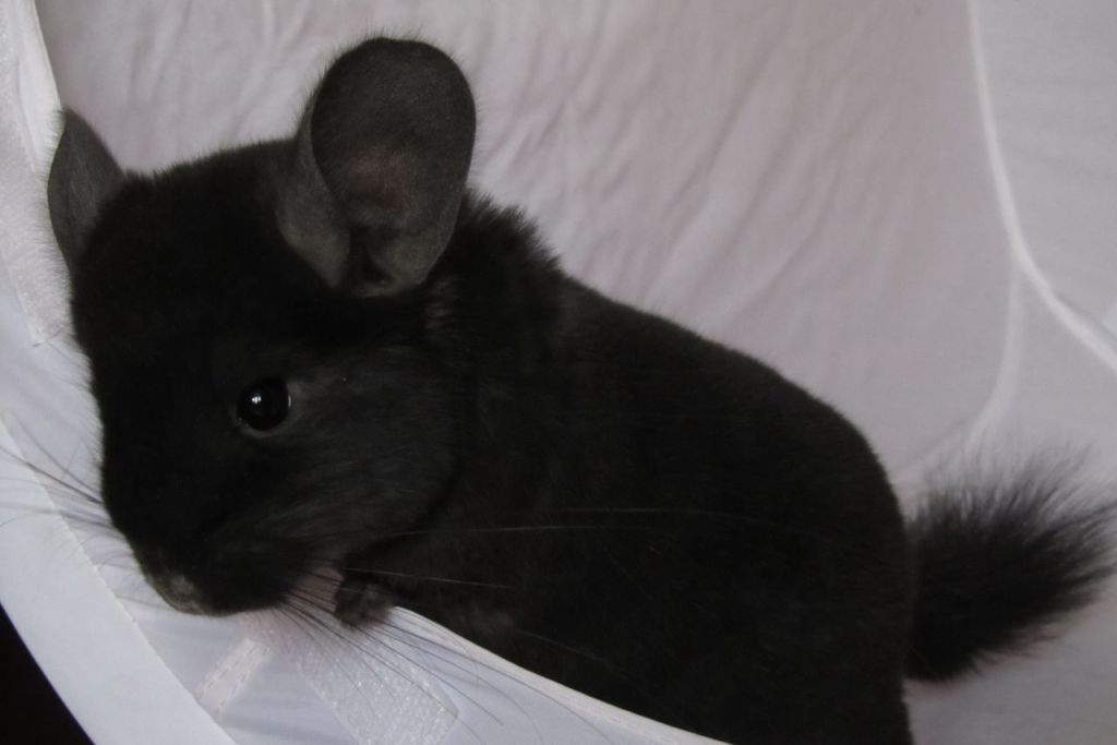 Шиншиллы этой расцветки имеют черный окрас меха и черные глазки. Также расцветка этих животных имеет второе название — древесный уголь.
