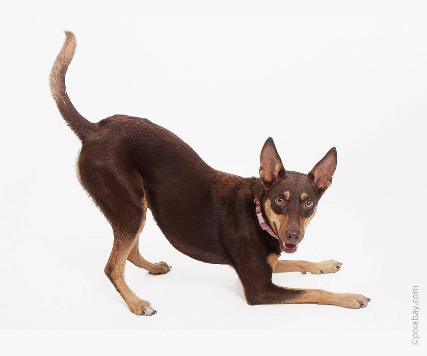 - поднятый вверх хвост (вертикально) говорит о том, что животное в прекрасном настроении и готово к играм и общению;