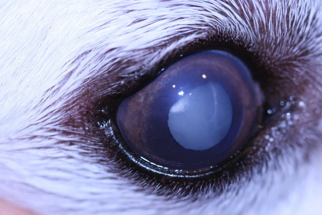 Катаракту можно заметить на глазах своего питомца даже и не специалисту в области глазных болезней. Око выглядит так, словно на нём лежит мутная плёнка. Такого рода пятно на глазах собаки – повод обратиться за помощью к ветеринару.