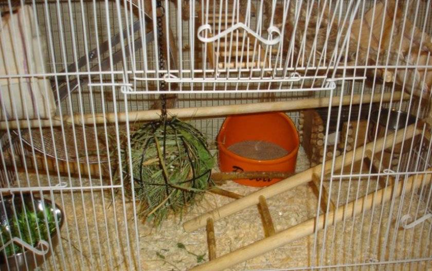 малышам нужно отдыхать, поэтому в клетке должны быть длинные полочки для сна и парочка коротких для игр;
