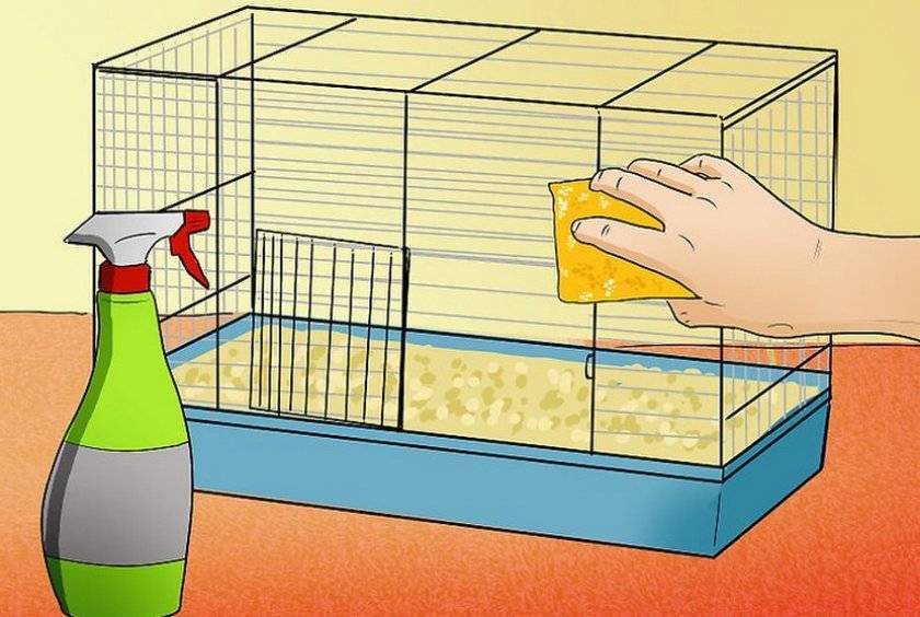 Один раз в неделю необходимо убираться в клетке полностью. Для этого стоит извлекать животных из жилища. Подстилку следует сменить полностью. Поилки и кормушки вымыть в мыльной воде и просушить. Использовать сильнодействующие средства нельзя, так как они могут нанести вред здоровью зверька. Один раз в полгода следует производить полную дезинфекцию жилища. Для этого следует приобрести специальные средства в зоомагазинах.