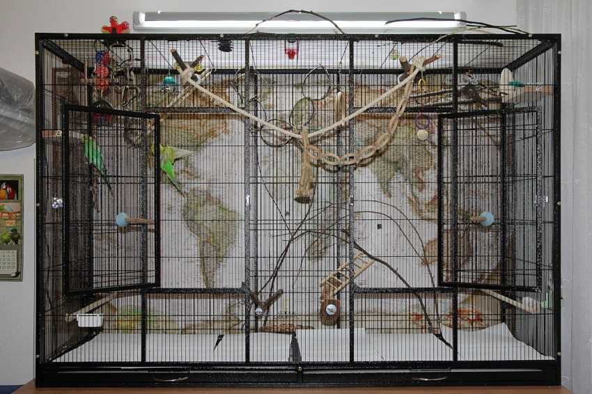 Помните, что расстояние между прутьями клетки не должно превышать 1,3 см. От этого будет во многом зависеть безопасность питомцев. Если это правило не соблюдено, следует обтянуть стенки специальной мелкой сеткой