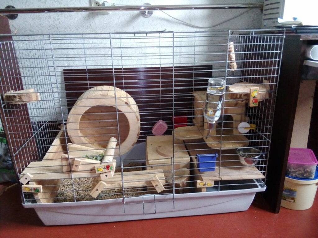 - ежедневному удалению из клетки остатков еды и мусора, промывке кормушек и поилки;