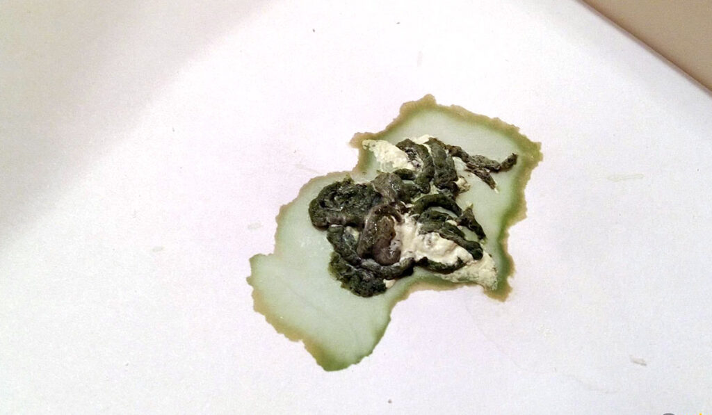 - Нехватка микроэлементов, воспаление зоба, грибок, дисбактериоз или инфекция — в стуле присутствует непереваренная пища в виде мелких частиц.