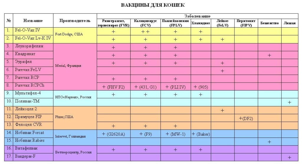 Штаммы именно этих заболеваний входят в состав поливалентных прививок: «Новибак», Голландия; «Пуревакс» и «Фелиген» Франция.