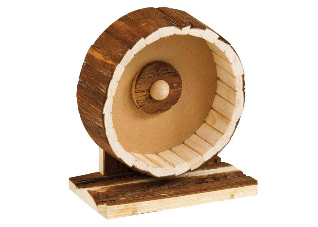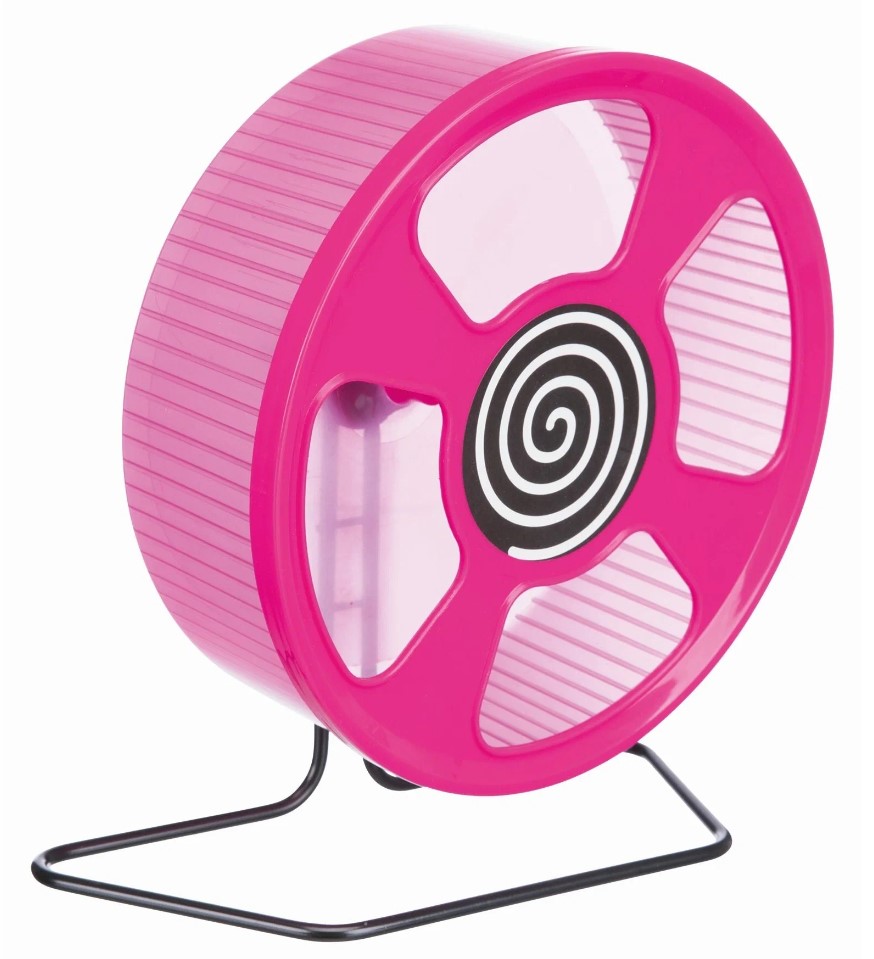 Trixie Exercise Wheel выпускается в размерах: диаметр - 33 см, глубина - 8 см. Такие габариты способны вместить не только хомяков больших пород, но и другие виды грызунов, например, крыс или дегу. Колесо позволяет грызунам оставаться в активной жизненной фазе, не страдая от телесных и ментальных проблем. Пространство клетки является недостаточным для высвобождения энергии животного, поэтому Trixie Exercise Wheel является тренажером и игрушкой для питомца. Безопасность колеса обеспечивается за счет закрытого борта с креплением, где грызуны могут застревать и раниться. Передняя сторона модели имеет полузакрытый характер, ячейки для входа на беговую дорожку чередуются с закрытыми участками, что не позволит бегуну вылететь с трассы. Внутренний диаметр не имеет ступенек, но оснащен линейными засечками, которые улучшают сцепление лап и поверхности. Стоимость Trixie Exercise Wheel - 1430 рублей.