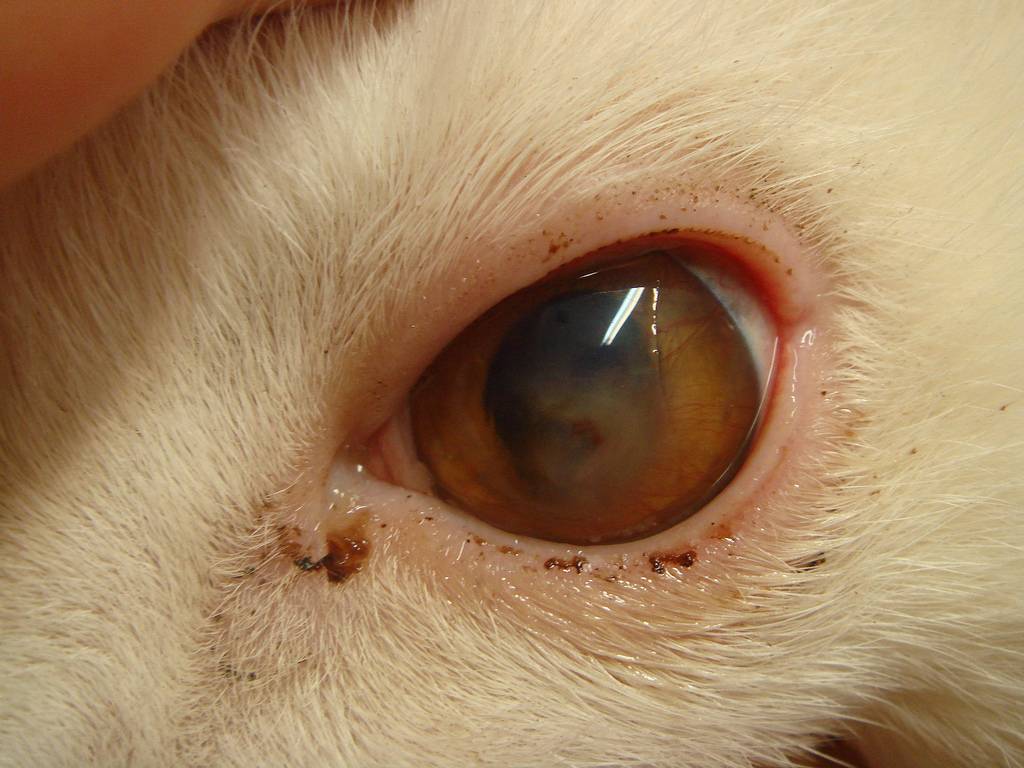 Инфекции — одно из самых опасных состояний. Очаг может быть сосредоточен только в глазу (вирусный конъюнктивит) или поражать весь организм (чумка, хламидиоз и т. д.). Инфекция характеризуется опухолью и сужением глаз, обильными истечениями с гноем, образованием корок и слипанием век.